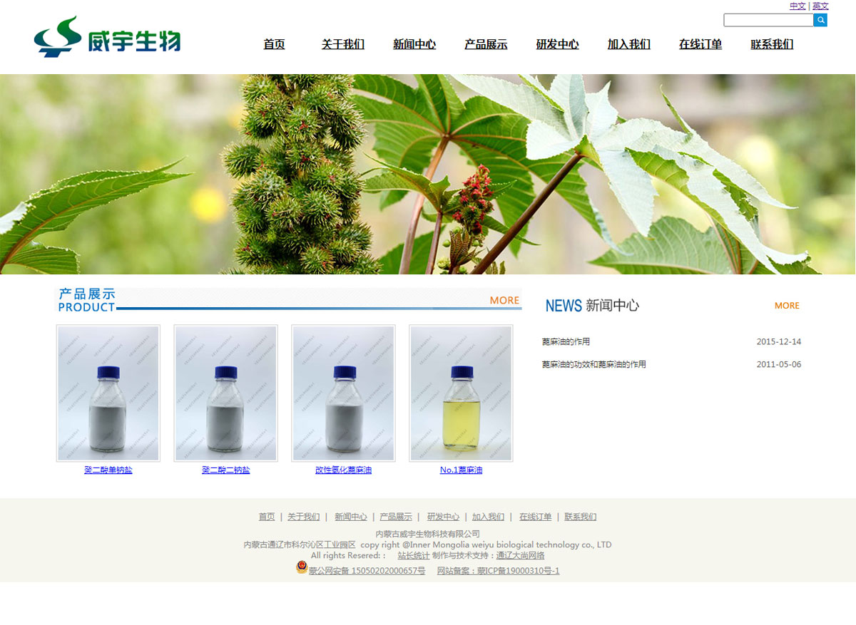 內(nèi)蒙古威宇生物科技有限公司,成立于2012年,注冊資金1500萬元,位于通遼市科爾沁區(qū)工業(yè)園區(qū),企業(yè)占地面積72384平方米,是一家以蓖麻籽為基礎原料,集科研、生產(chǎn)、銷售于一體的高新技術(shù)企業(yè)。